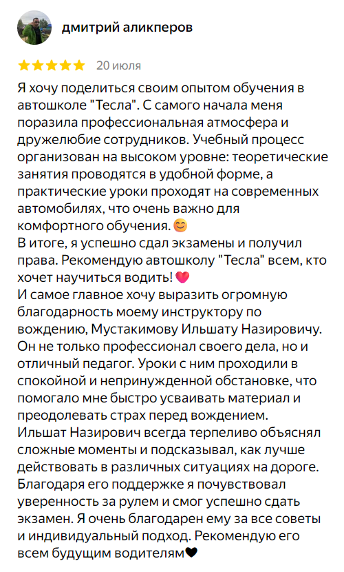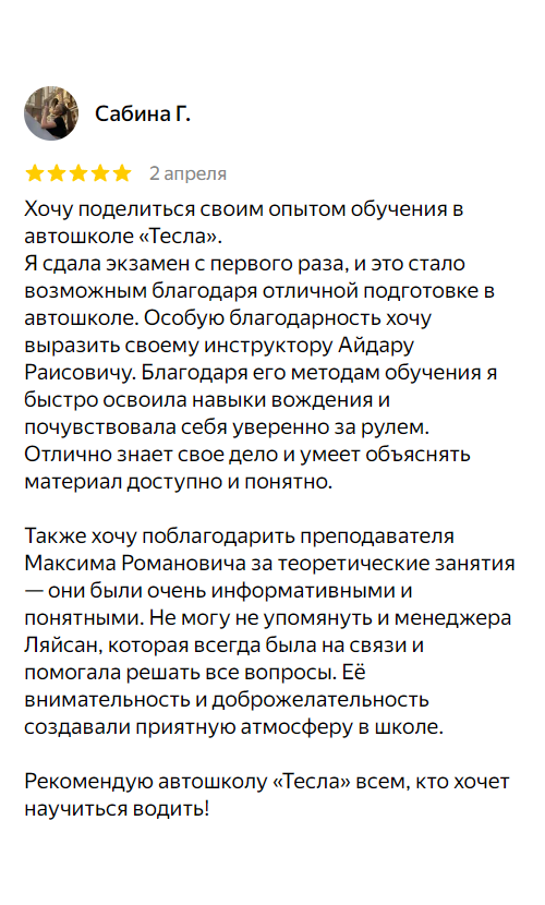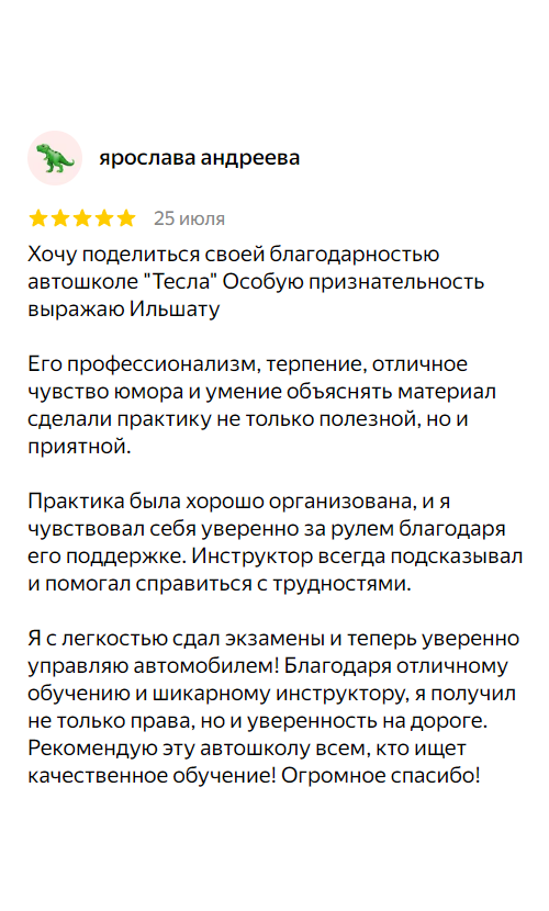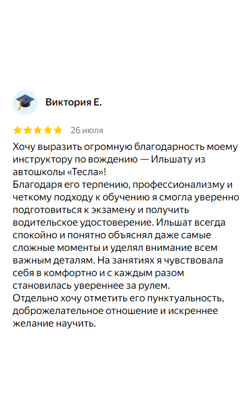 Возможность выбора гибкого расписания для теории и вождения, включая индивидуальные занятия.